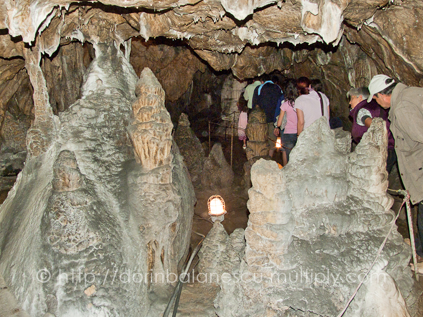 După aproximativ 40' ieșim prin celălalt capăt al galeriei situat în aval. Răcoarea constantă a peșterii, accentuată și de faptul că afară era foarte cald, fuse anulată de minunățiile din adâncuri cu forme care de care mai interesante, imaginația fiecăruia dintre noi putând găsi asemănări cu cele mai diverse făpturi ori lucruri, și de coridoarele de lungime considerabilă unde se putea merge doar pe vine, ca piticul!